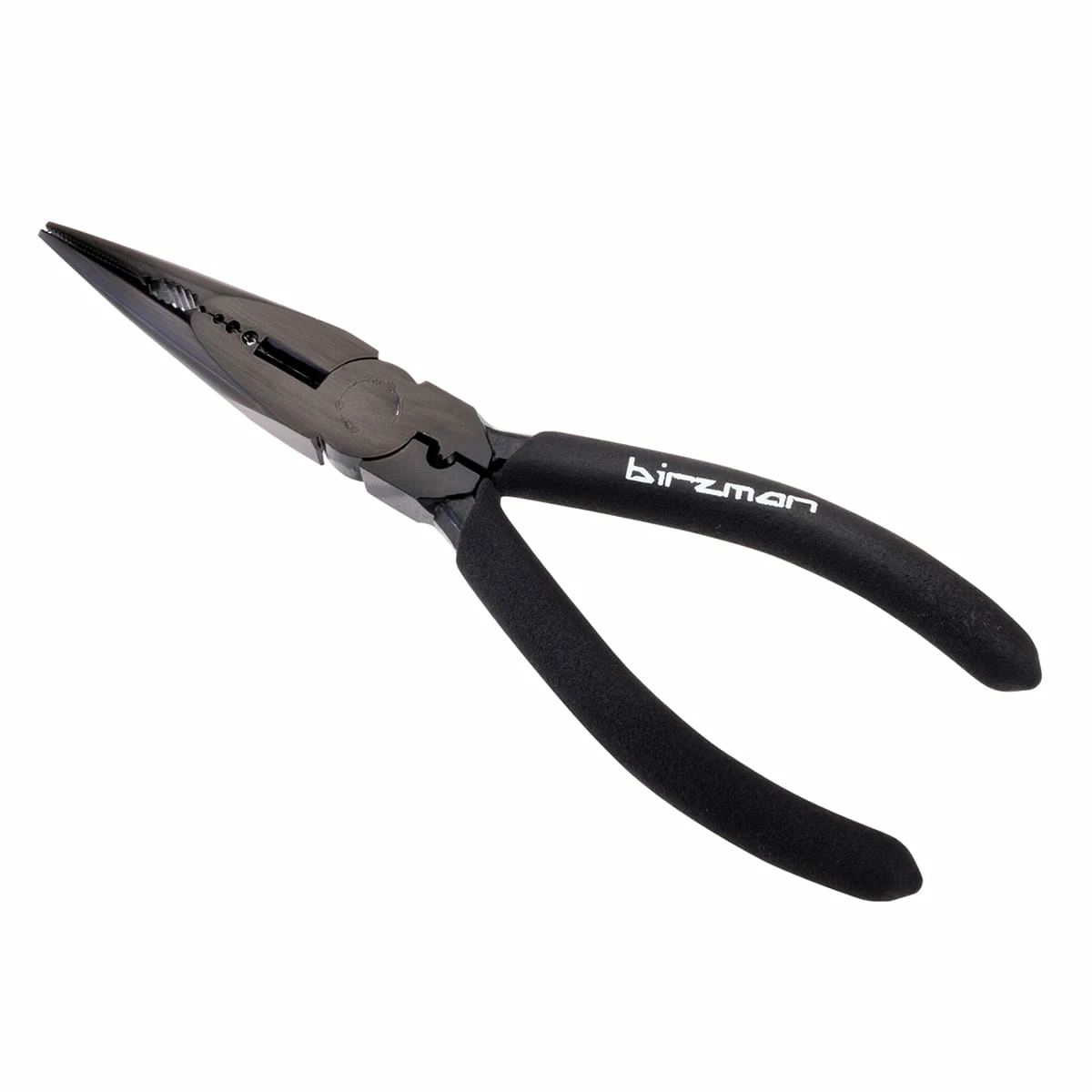 Les pinces d’atelier Birzman en acier allié combinent force, résistance et faible usure. Il dispose de cinq zones différentes, dont une sertisseuse pour les embouts de câbles et un trou de formage pour façonner les extrémités des boîtiers et les embouts.