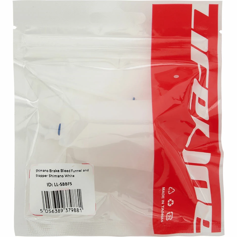 ◌ L’entonnoir et le bouchon de purge des freins Lifeline Shimano sont essentiels lors de la purge des freins Shimano. Connectez l’entonnoir à votre maître-cylindre et purgez le liquide de frein à travers votre système de freinage.