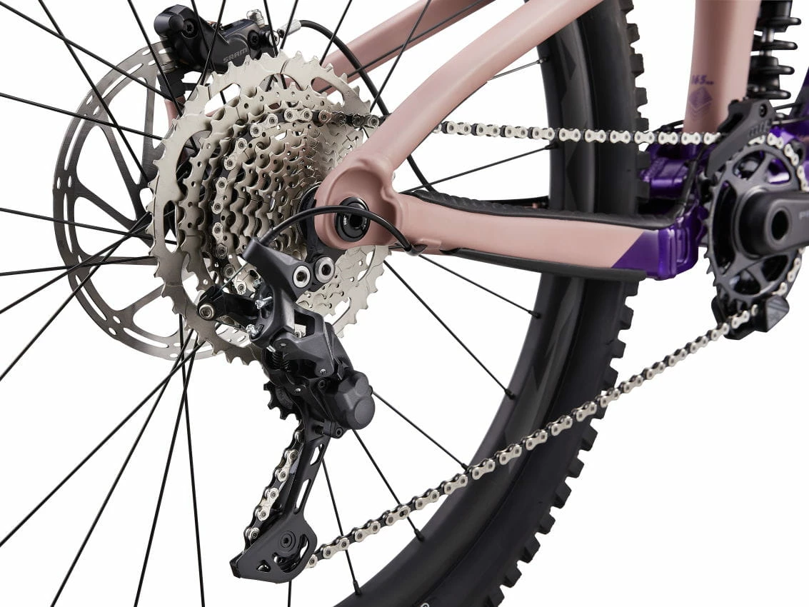Cadre : Cadre AluxX SL, triangle arrière Maestro avec flip chip géométrie, bascule de renvoi en carbone, compartiment de rangement du cadre, 165 mm de débattement, 12×148 mm, patte de dérailleur SRAM UDH Max. Dégagement des pneus : 2.5″ Max. Taille de plateau : 36T