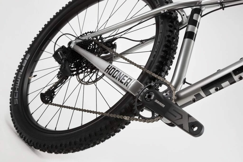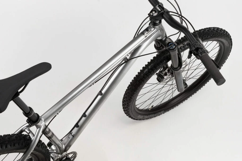 - Cadre : cadre en aluminium 6061 formé et abouté sur mesure avec pattes de 12×148 mm