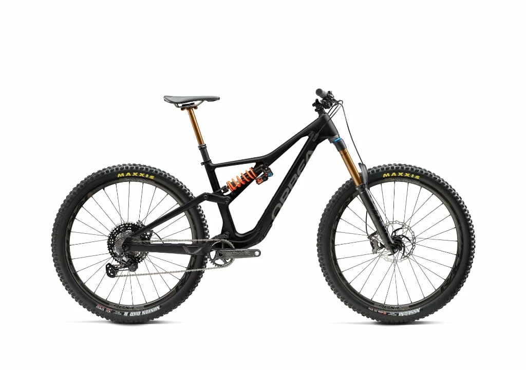 Cadre : Orbea Monocoque Race Carbon. Technologie de suspension Advanced Dynamics 160mm. 29″ wheels.Concentric Boost 12×148 rear axle. Géométrie purement enduro. Routage interne des câbles. ISCG05