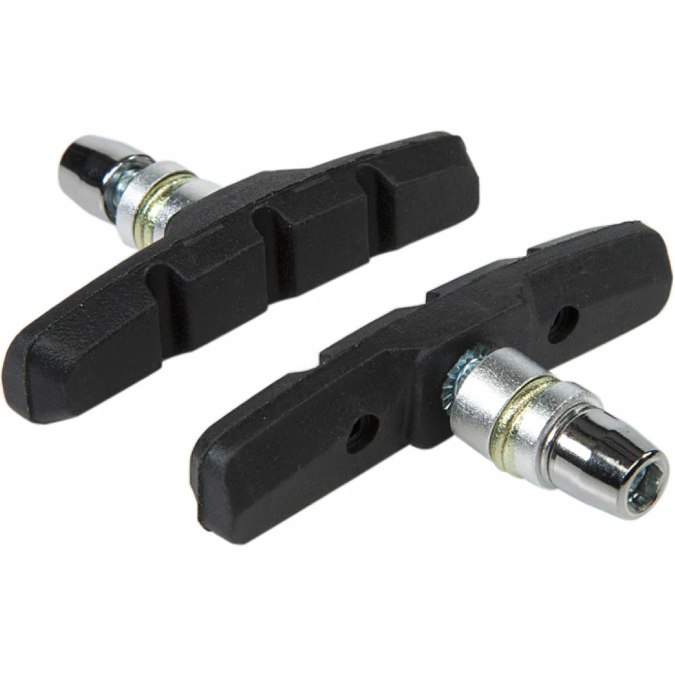 Un jeu de quatre patins de freins de haute qualité à utiliser avec des freins V-brakes. Disponibles en taille 55 mm pour les vélos hybrides et en 70 mm pour les VTT.