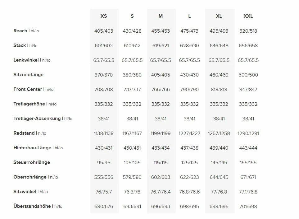 La longueur des bases et l’angle de selle sont adaptés à la taille du cadre (l’angle de selle devient plus raide et le triangle arrière augmente avec la taille du cadre), de sorte que chaque cycliste, quelle que soit sa taille, bénéficie de la même géométrie équilibrée pour une conduite optimale.
