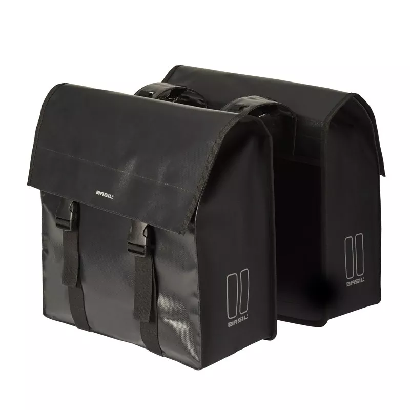 Cette sacoche vélo double Urban Load de Basil est à la fois pratique et design : grâce à son côté imperméable, vous pouvez transporter vos affaires au sec.